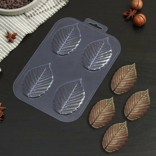 Форма для шоколада и конфет пластиковая «Листья вяза», цвет прозрачный