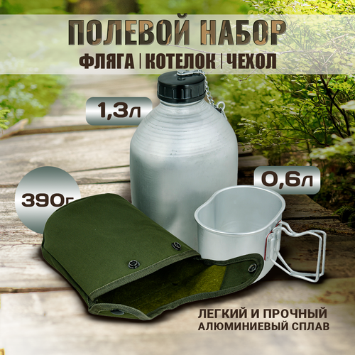 Армейская алюминиевая фляга 1.3 л. с кружкой-котелком в чехле