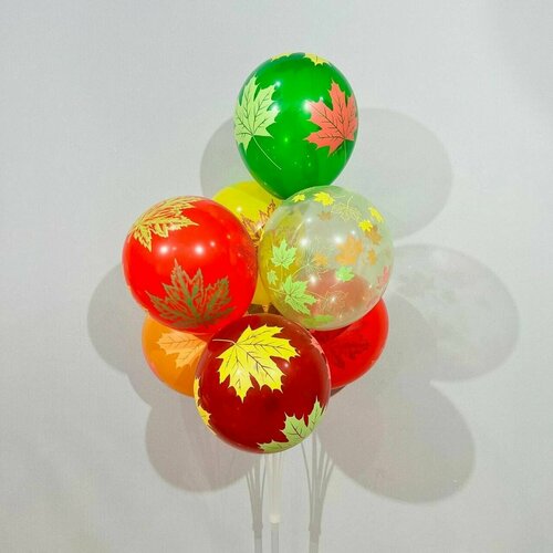 Разноцветны шары с осенними листьями 7шт
