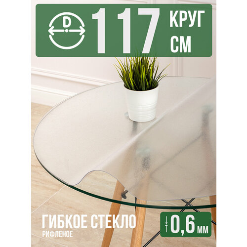 Круглая силиконовая рифленая скатерть гибкое мягкое стекло 0,6мм диаметр 117см