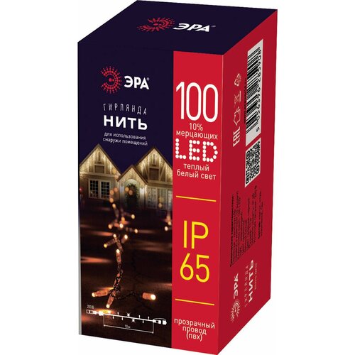 Светодиодная новогодняя гирлянда ЭРА ERAPS-NP10 нить 10 м тёплый свет 100 LED