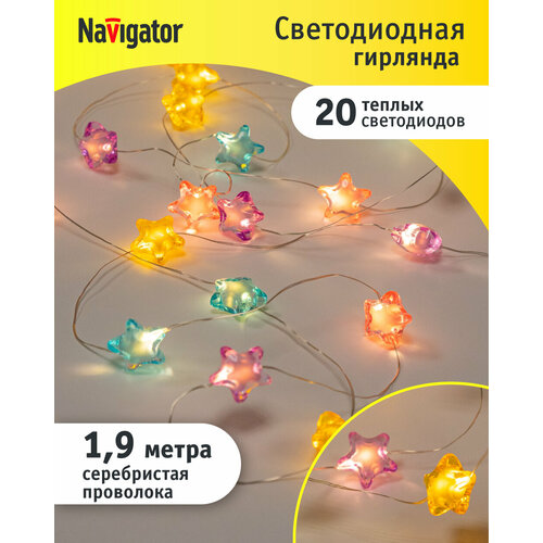 Гирлянда «Цветные звездочки» на батарейках Navigator 95 050, теплый белый, 1.9 м
