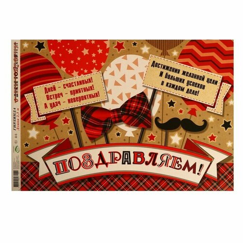Мини-гирлянда "С Днём Рождения!" открытка, бантик, усы, 50х34.5 см