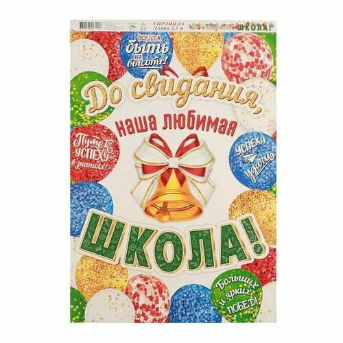 Гирлянда с плакатом "До свидания, школа!" колокольчик, длина 230 см, А3 (комплект из 5 шт)