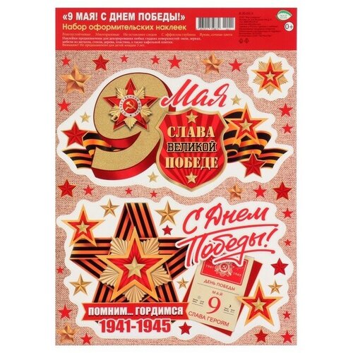 Мир открыток Набор наклеек "С Днём Победы!" медаль, календарь, 24,4х33,8 см