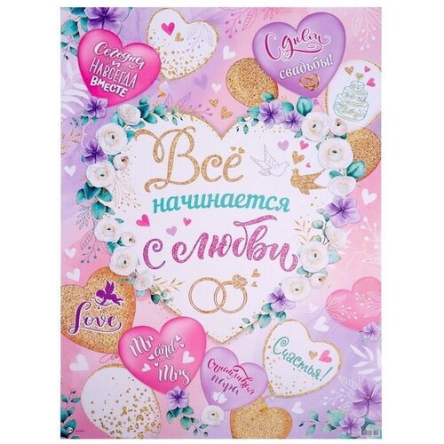 Мир открыток Плакат А2 "Всё начинается с любви!" 50х70 см