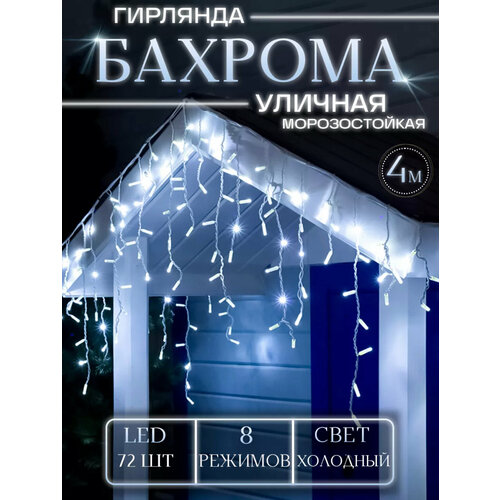 Гирлянда уличная Бахрома, Светодиодная гирлянда Бахрома, Электрогирлянда Бахрома на Новый год, 12 метров, Холодный