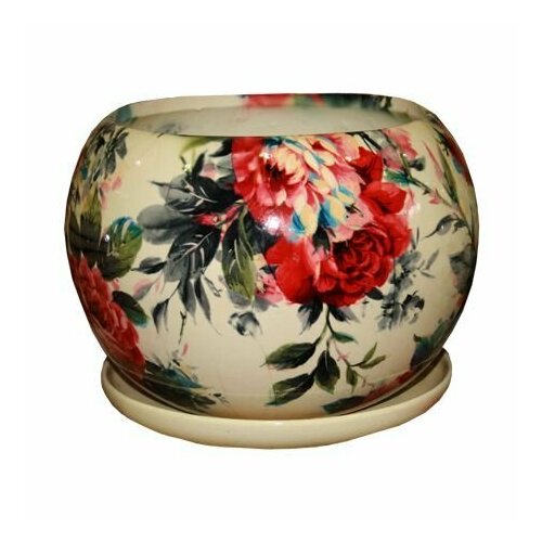 DP01 T115B Горшок с поддоном Кула 13см "пионы на бежевом" /1,4л