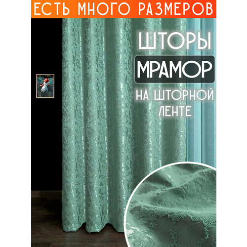 Готовая плотная интерьерная штора(портьера) с рисунком мрамор 250x240 см.(1шт.) со шторной лентой