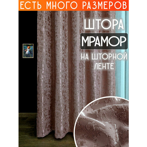 Готовая плотная интерьерная штора(портьера) с рисунком мрамор 250x240 см.(1шт.) со шторной лентой