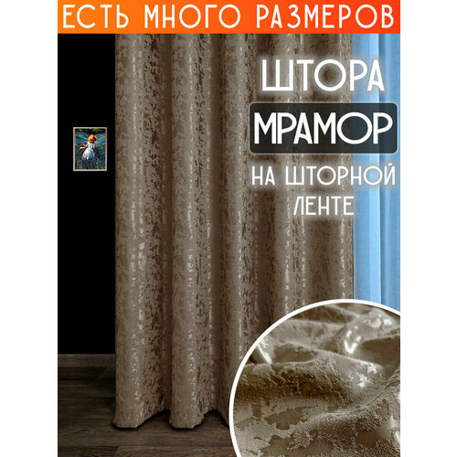 Готовая плотная интерьерная штора(портьера) с рисунком мрамор 250x260 см.(1шт.) со шторной лентой