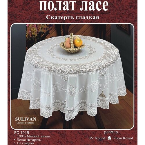 Скатерть Виниловая FC-101B, белая 137 см Круг, 100%ПВХ