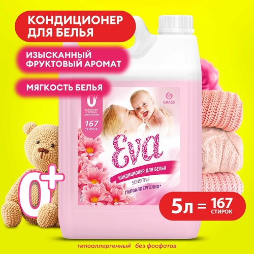 GRASS Кондиционер ополаскиватель для белья концентрированный Grass Eva Sensitive для стирки бытовая химия, 5 л