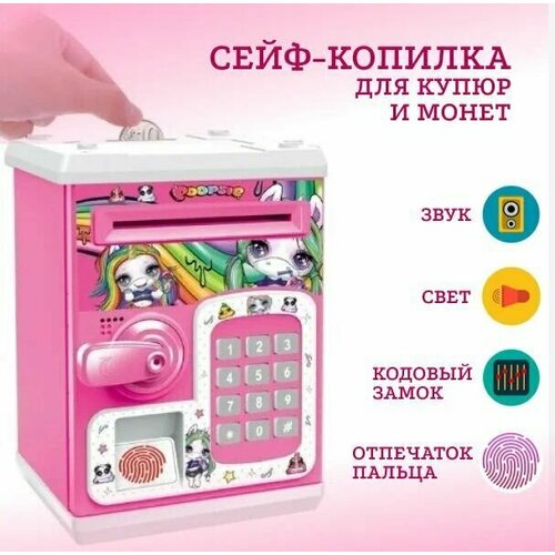 Копилка - Сейф с купюроприемником и отпечатком пальцев розовая
