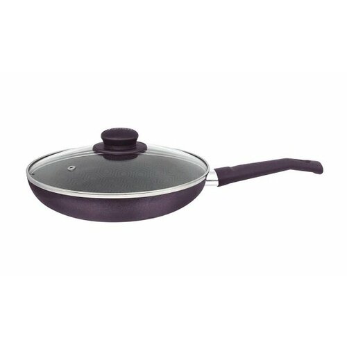 JARKO Сковорода глубокая Kantry, d=26 см, пластиковая ручка, стеклянная крышка, антипригарное покрытие, цвет бордовый