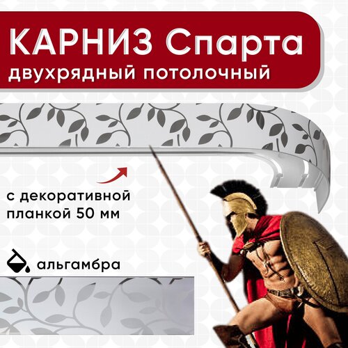 Карниз двухрядный потолочный с декоративной планкой (бленда 50мм), пластмассовый, шинный, Спарта альгамбра 240см