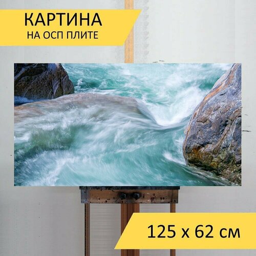 Картина на ОСП 125х62 см. "Долина верзаска, вода и камень, швейцария" горизонтальная, для интерьера, с креплениями