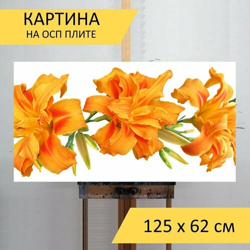 Картина на ОСП 125х62 см. "Лилейники, цветы, договоренность" горизонтальная, для интерьера, с креплениями