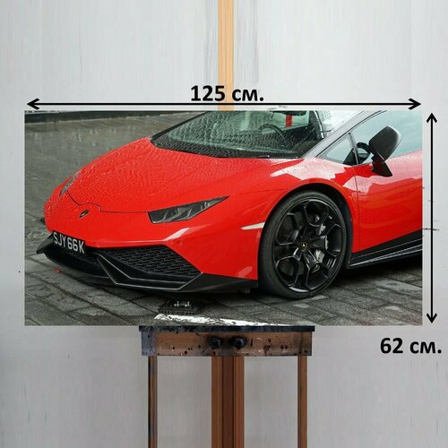 Картина на ОСП 125х62 см. "Lamborghini, красный, роскошный автомобиль" горизонтальная, для интерьера, с креплениями