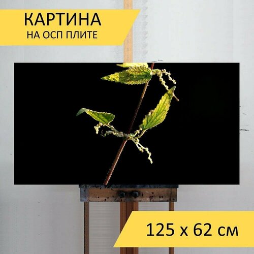 Картина на ОСП 125х62 см. "Крапива, стебель, трава" горизонтальная, для интерьера, с креплениями