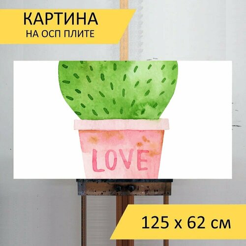 Картина на ОСП 125х62 см. "Кактус, завод, горшок" горизонтальная, для интерьера, с креплениями