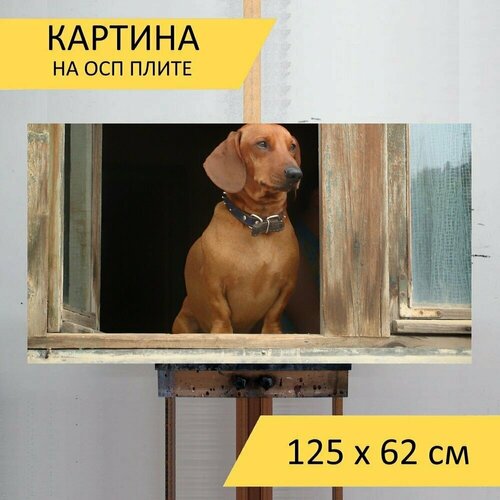 Картина на ОСП 125х62 см. "Такса, домашний питомец, собака" горизонтальная, для интерьера, с креплениями