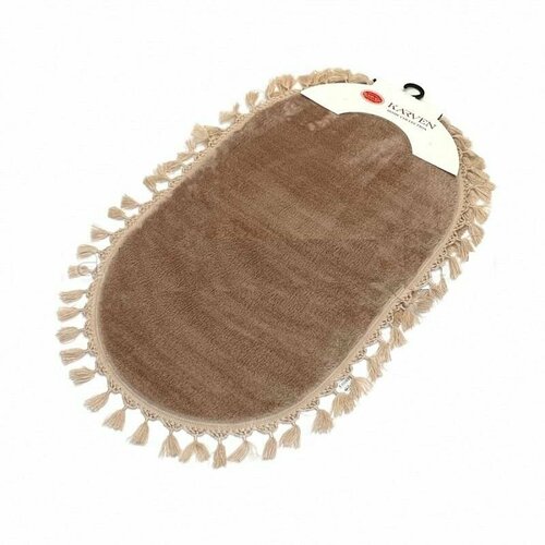 Набор ковриков для ванной мех с бахромой KARVEN KV413 POST DOKUMA OVAL SACAKLI коричневый 50х60 (1шт), 60х100 (1шт)