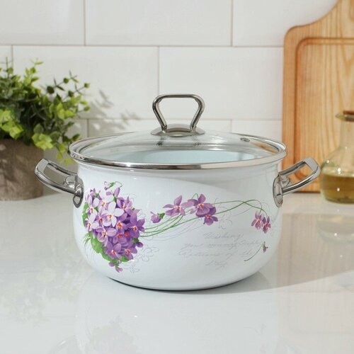 Interos Кастрюля «Сирень», 3,1 л, стеклянная крышка