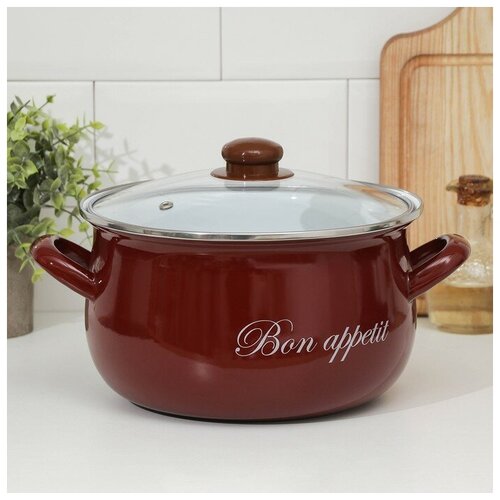 Кастрюля «Бордо», 5,1 л, стеклянная крышка, индукция, цвет бордовый