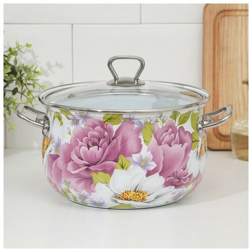 Кастрюля «Пион», 4 л, стеклянная крышка