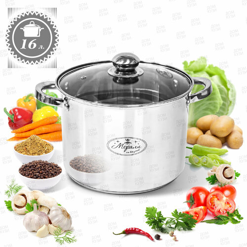 Кастрюля с крышкой Мерали Белиссимо из нержавеющей стали для всех видов плит 16 л 30х23 см для всех видов плит