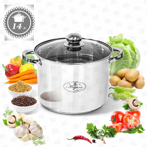 Кастрюля с крышкой Мерали Белиссимо из нержавеющей стали для всех видов плит 14 л 28х23 см для всех видов плит