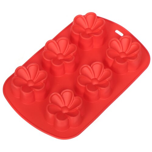 Форма для выпечки силиконовая Цветочки KT-S-325 на 6 кексов, 25х16.5х3 см