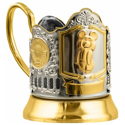 Подстаканник никелированный с позолотой 'Олимпийский мишка 2 герба СССР '