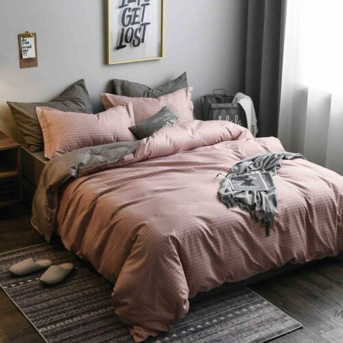 Постельное белье семейное розовый, серый Mency сатин жатка простынь 215x235, пододеяльник 150x220-2шт