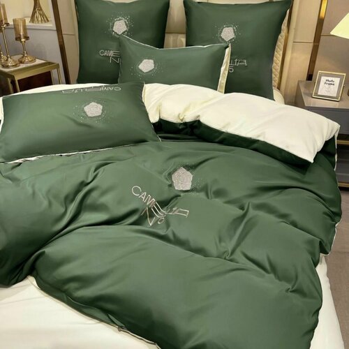 Постельное белье семейное с 2 пододеяльниками 160x220 Simple Living Hawaii комплект сатин, 2 наволочки 50х70, Зеленый