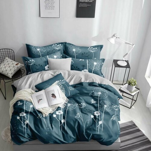 Комплект постельного белья евро, поплин, простынь на резинке по кругу,2 наволочки 70х70, 2 наволочки 50х70, пододеяльник на молнии 8