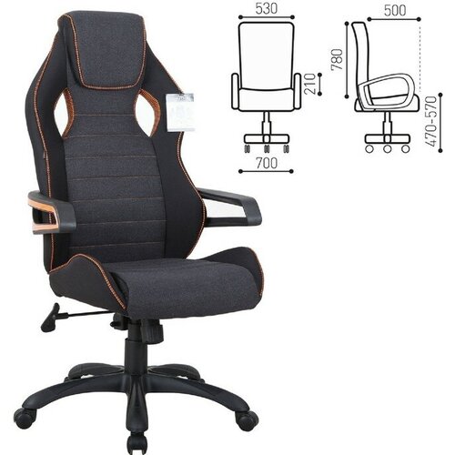 Кресло игровое BRABIX 'Techno Pro GM-003', ткань, черное/серое, вставки оранжевые