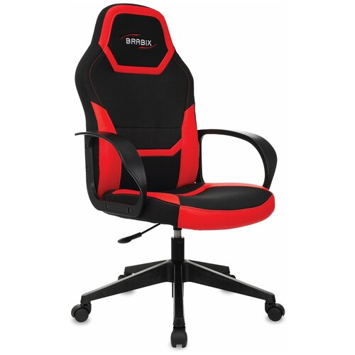Кресло офисное BRABIX "Alpha GM-018", ткань//экокожа, черное/красное, 532637, GM-018_532637
