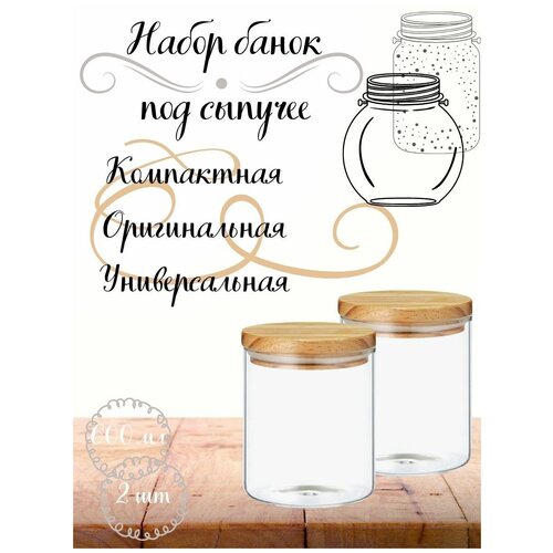 Набор стеклянных банок (2шт) для сыпучих продуктов с бамбуковой крышкой, 600 мл