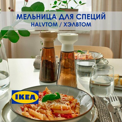Набор мельниц для специй, соли и перца, стекло/коричневая, HALVTOM, икеа,19 см, 2 штуки