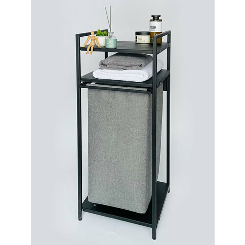 текстиль, металлСтильная и удобная Корзина - стеллаж для любых домашних вещей, отличное решение для хранения белья перед стиркой в ванную комнату. При высокой вместительности она занимает совсем немного места в помещении ванной .