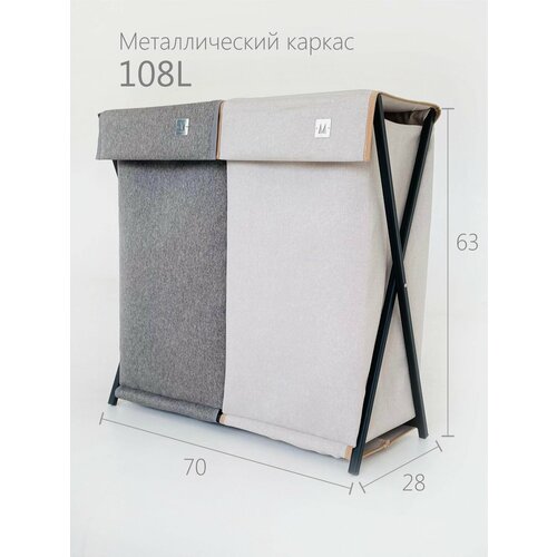 Двойная Корзина для белья Двойная "Molinardi creativo" ,"Kagliari" белый и серый на черном