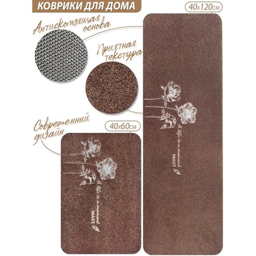 Коврик придверный, коврик прикроватный, коврик для кухни MAST Flower, комплект 120x40см + 60x40см