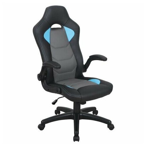 Кресло компьютерное BRABIX "Skill GM-005" экокожа черное/голубое