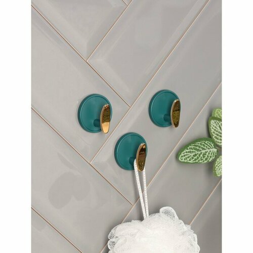 Набор крючков на липучке Gold, 3 шт, 4х4х2,5 см, цвет зелёный