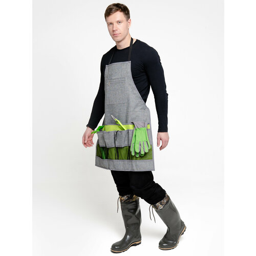 Фартук садовый, большой нагрудный карман, 2 ряда карманов внизу (1 ряд карманы с сеткой), непромокаемая ткань