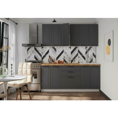 Готовый кухонный гарнитур Прага 220 см Белый/Белое дерево, без столешницы