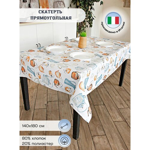 Скатерть на стол тканевая прямоугольная 140х180 MELANGIO / кухонная скатерть хлопок / скатерть столовая