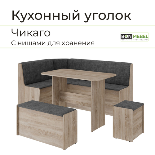 Кухонный уголок Чикаго BONMEBEL Дуб сонома /серый, 159х109,8х79,8 см